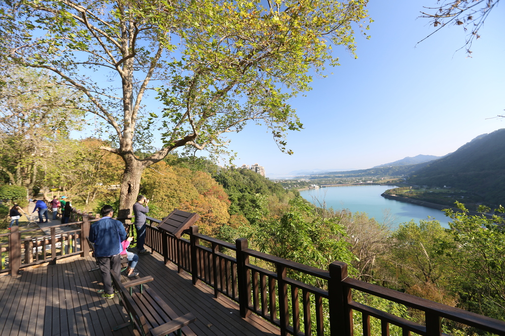 在过了奎辉後的不远处就是石门水库观景平台,是欣赏石门水库的最佳位置,湛蓝的天空搭配石门水库的山光水色,如此壮阔的美景,不禁令许多人纷纷驻足拍照留念。