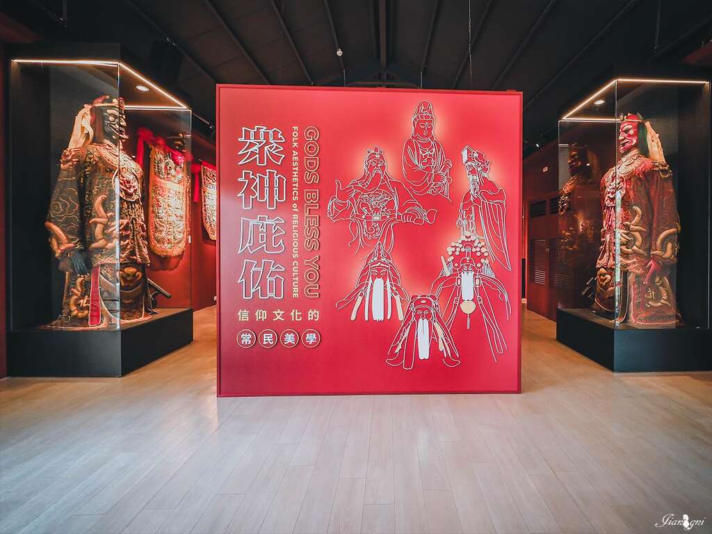 「眾神庇佑-信仰文化的常民美學」這裡展出的是重要民俗信仰、節慶活動為主題:如過年、元宵節、清明節等重要節慶,搭配寫春聯、乞龜、舞籠燈…等展現在地文化特色活動。另外也有設置祈福互動裝置,透過祈福上達天聽,眾神保佑,凝結對傳統信仰文化的傳承。