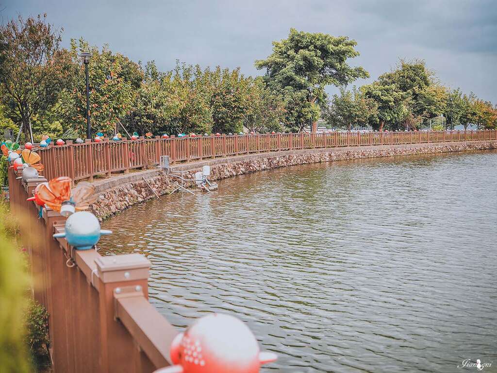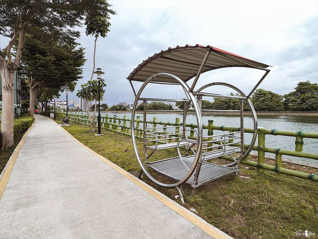 高城埤塘生態公園,白天除了可以散步、觀賞裝置藝術,據說夜間也有彩色燈飾,點亮了埤塘公園裡的浪漫氛圍~