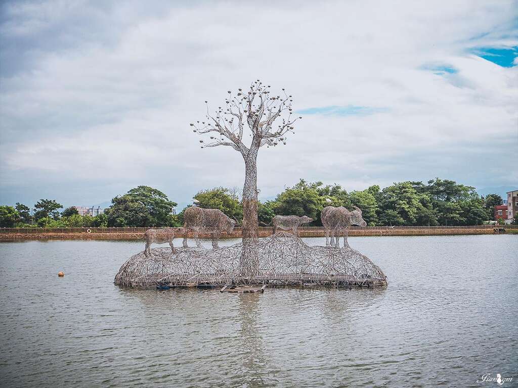 高城島裝置藝術-以牛為主題,以浮台方式呈現於陂塘水面,除了作為休憩、打卡觀賞之外,也能作為在地鳥類棲息地喔!把作品融入生態環境中,恰好也呼應了生生不息的主題。