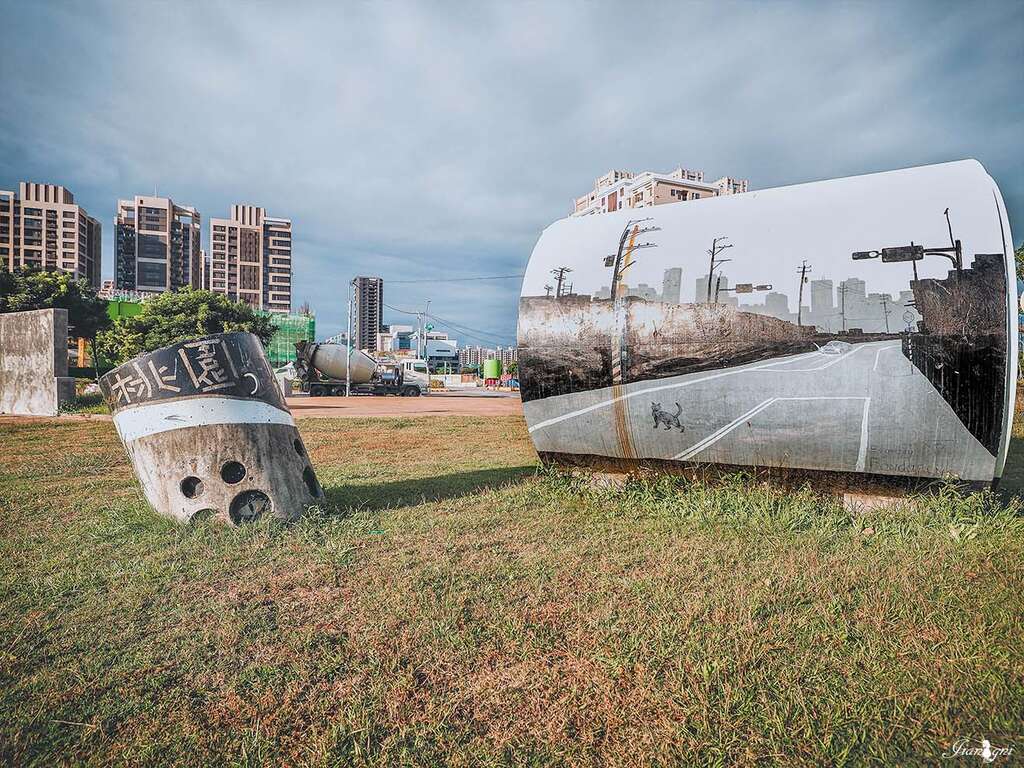 中大公園有大大、小小不同尺寸的水管彩繪,以各種素材與畫風來呈現彩繪作品,相當具有城市意象與自己特色的公園,不盡讓人聯想起哆啦A夢的經典場景-水管空地,說是踏上時光機~回到童年時光一點也不為過。