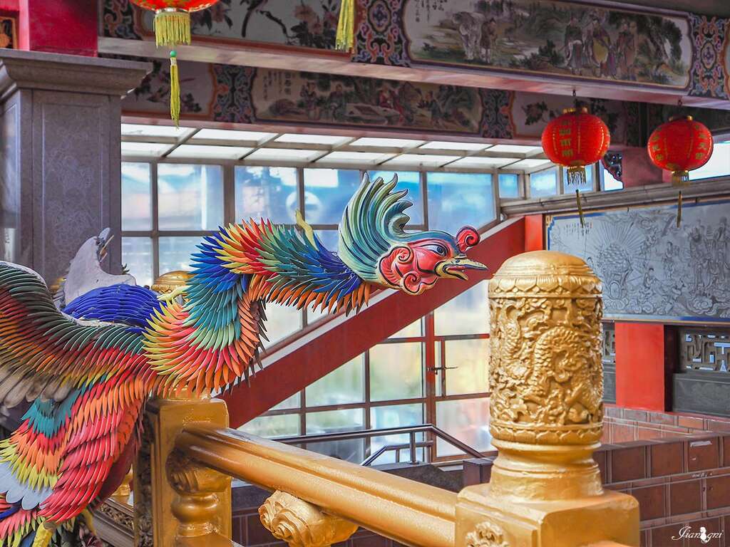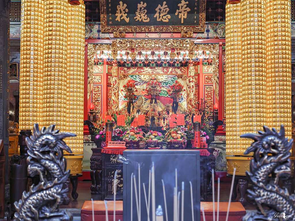後殿頂端兩側的木雕,出自桃園首席名匠葉金萬大師之手,螭虎曲線生動,展現雄渾大器。來到三元宮除了上香祈福,也能欣賞到百年廟宇的精湛工藝,不論是華麗的木雕、活靈活現的花草、人物刻劃、楹柱上的名家真跡、擂金彩繪…等,都彌足珍貴,值得細細探究。