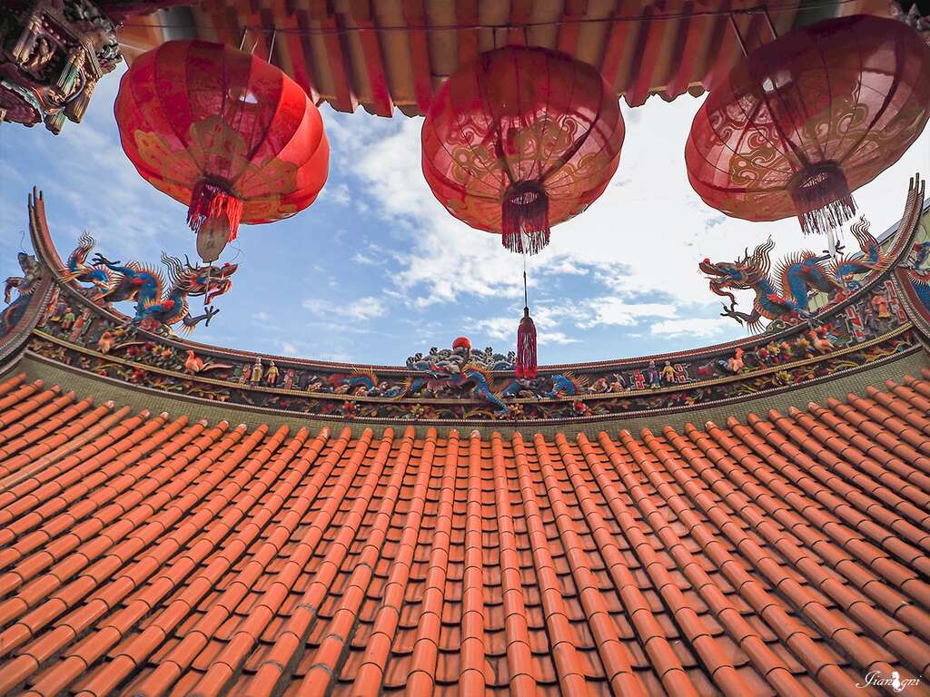 從二樓後殿望出的視野,可以近距離觀賞屋脊-西施嶺,也稱作西施脊,清末以降,臺灣廟宇流行在屋脊上加龍形等華麗高脊。